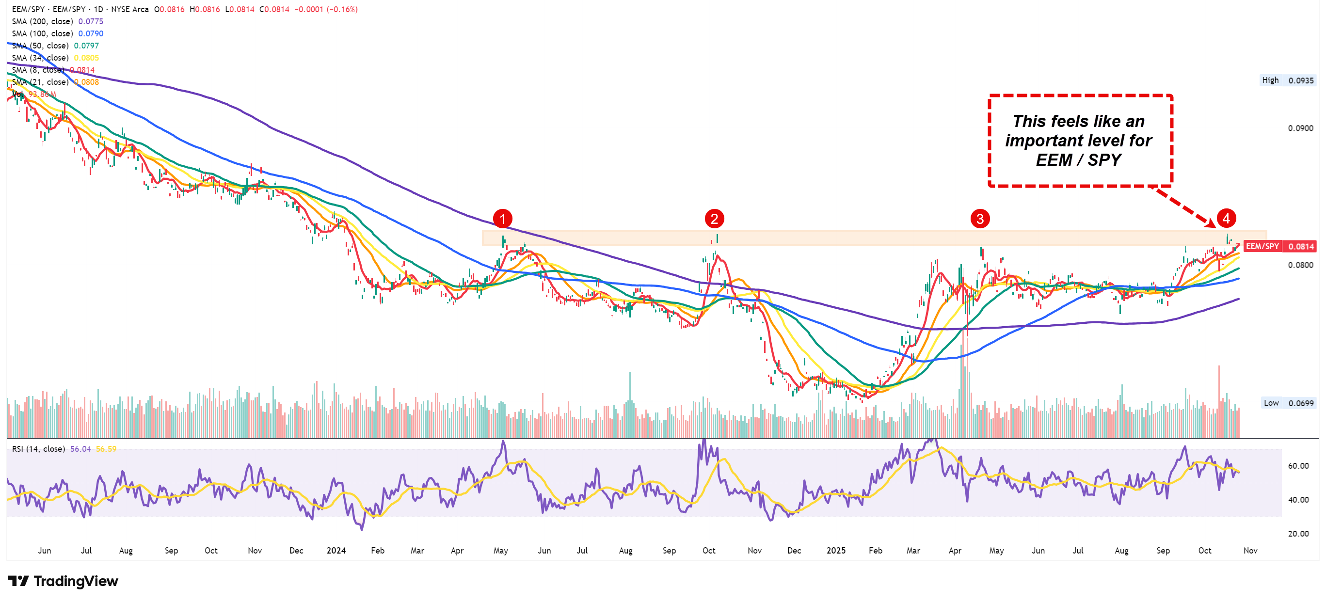 Let’s see if EEM 0.00%↑ can break out of its ratio chart with the S&P by the time I get back from China next week. At 28% of the EM index (add another 20% for Taiwan), Greater China needs to be working to avoid a quadruple top!