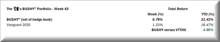 Review of the 🐿️'s BUSHY™ Multi Asset ETF Portfolio and live Acorn trade ideas. 2025, Week 43.