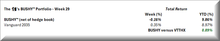 Dollar hedges were insufficiently sized to help us avoid a small drawdown in BUSHY™ last week.