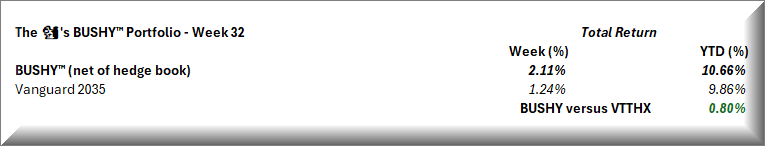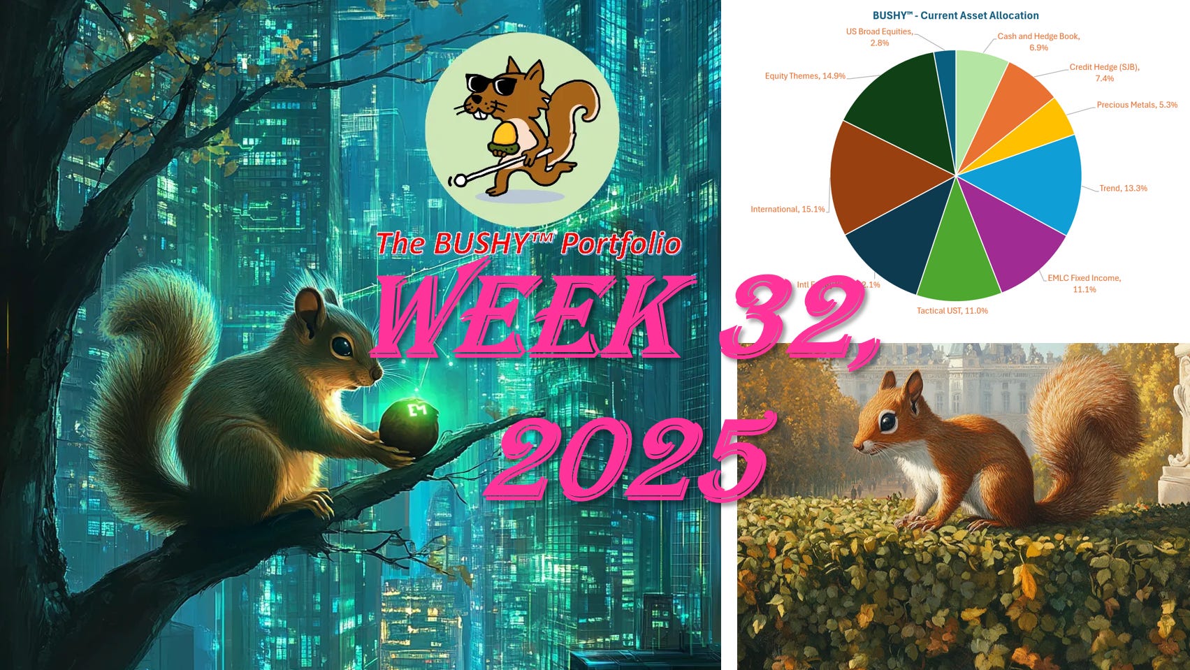 Review of the 🐿️'s BUSHY™ Multi Asset ETF Portfolio and live Acorn trade ideas. 2025, Week 32.