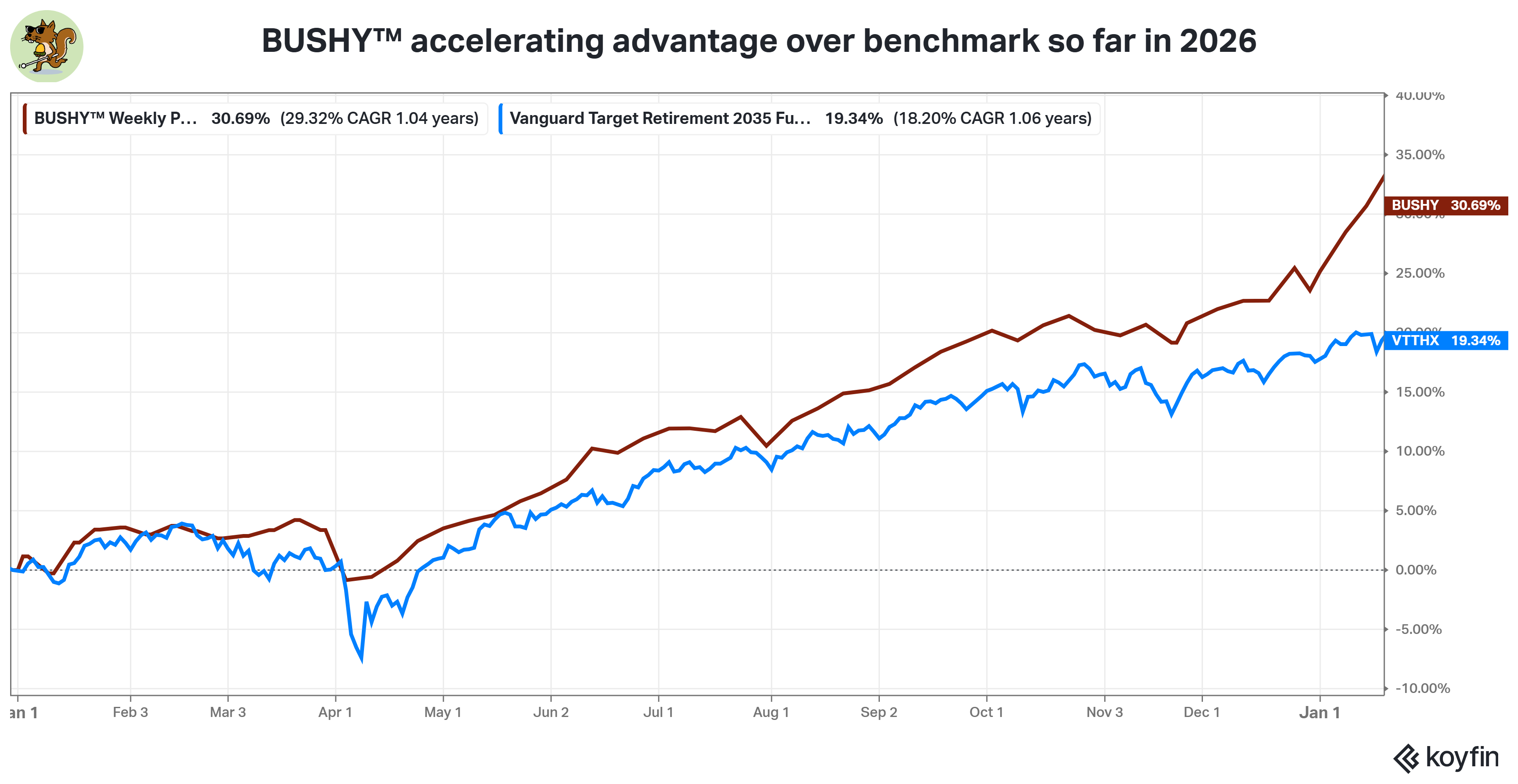 BUSHY™ has now added over 11% in excess of benchmark since the beginning of 2025, with significantly reduced volatility and smaller drawdowns.