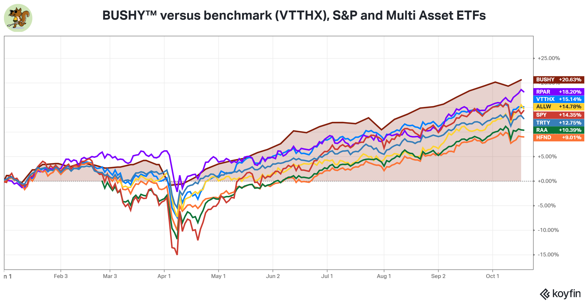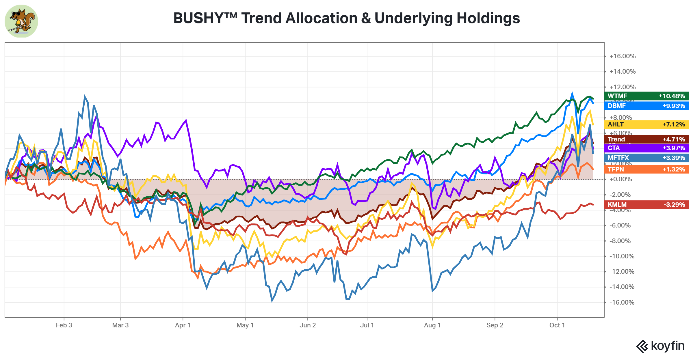 Review of the 🐿️'s BUSHY™ Multi Asset ETF Portfolio and live Acorn trade ideas. 2025, Week 42.