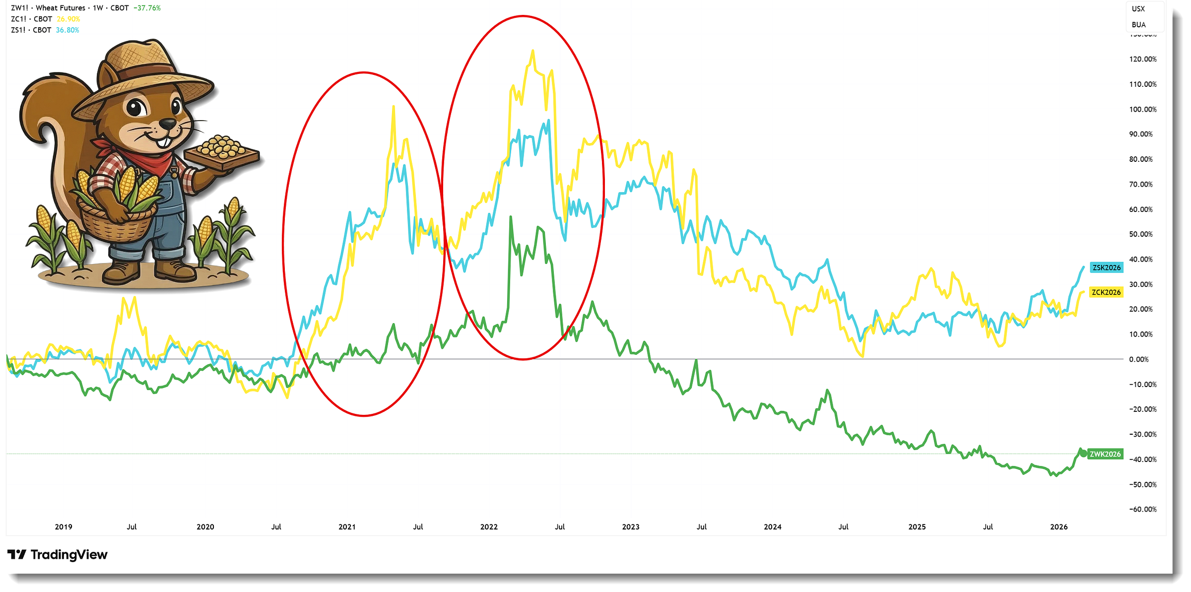 Let me explain. Until the summer of 2020 I had never traded an agricultural commodity futures contract in my life. I was then unfortunate enough to catch a monster bull run in corn and soybean prices. Early fortune bred over-confidence. Catching the 2022 Russia / Ukraine squeeze in grains did not help on that front either. A complete and utter monster was created - Farmer Squirrel!