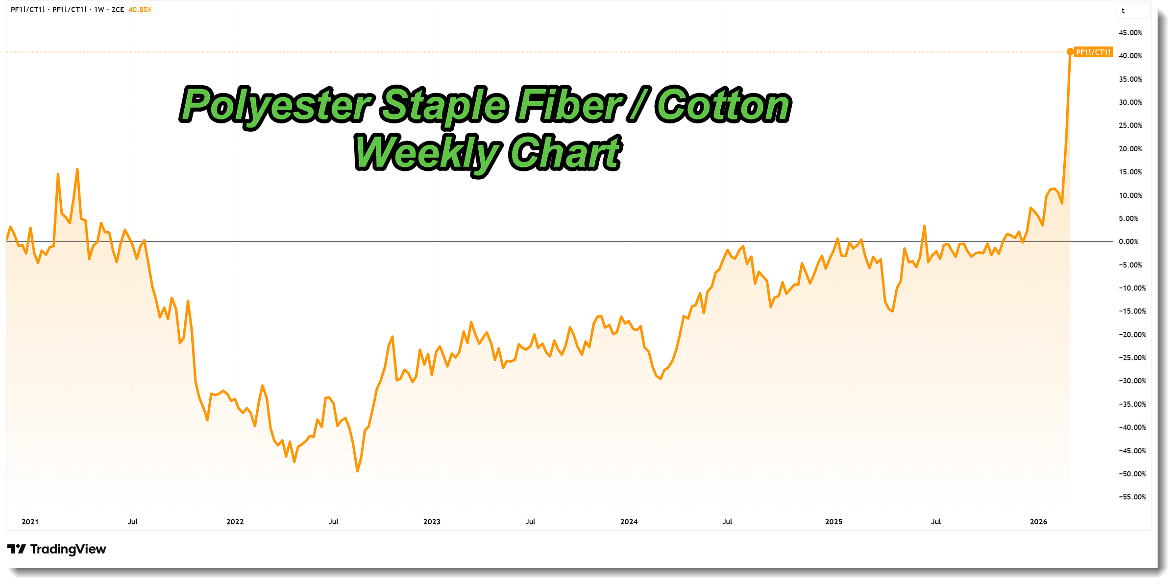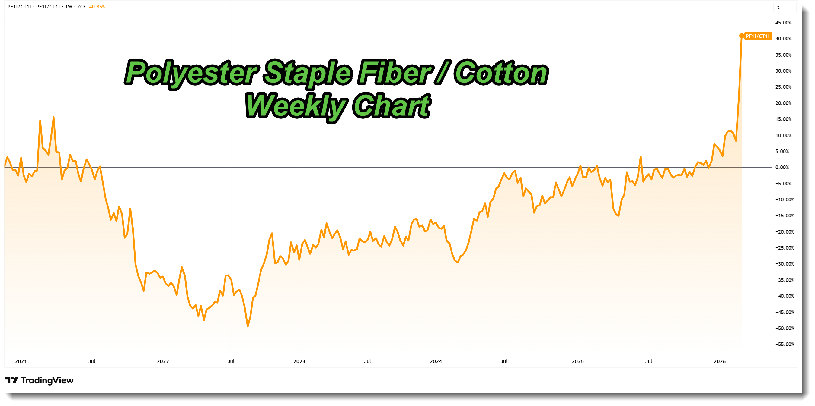 These days, cross-price elasticity between cotton and polyester is heavily restricted by modern consumer preferences (i.e. breathable / wicking activewear will not be replaced with cotton). However, the impact on cotton balances simply cannot be zero.