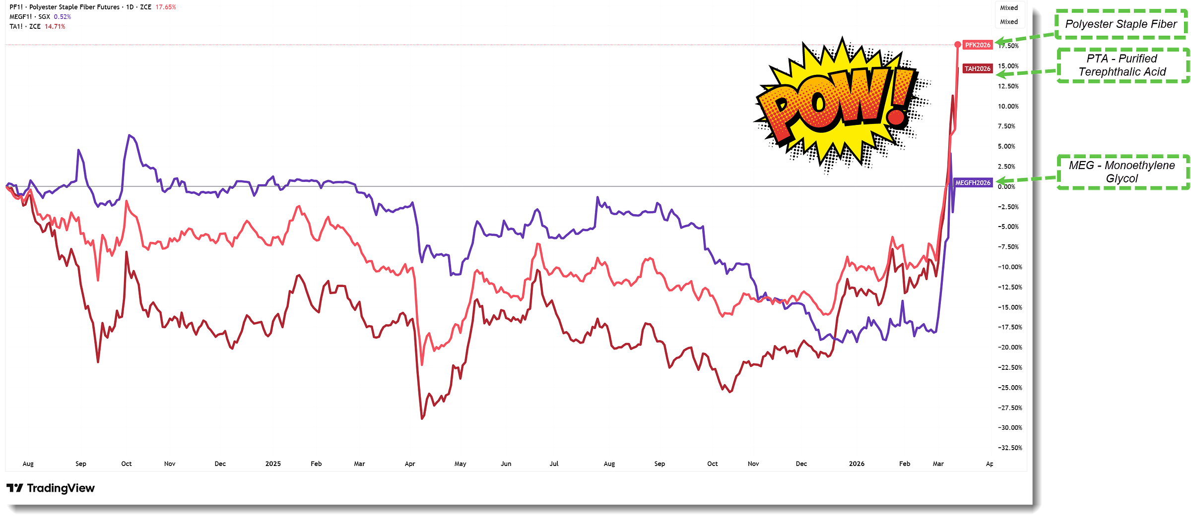 As the Hormuz blockade severely restricts refinery feedstocks, prices for polyester and core inputs like PTA and MEG have climbed over 40% in a matter of days.