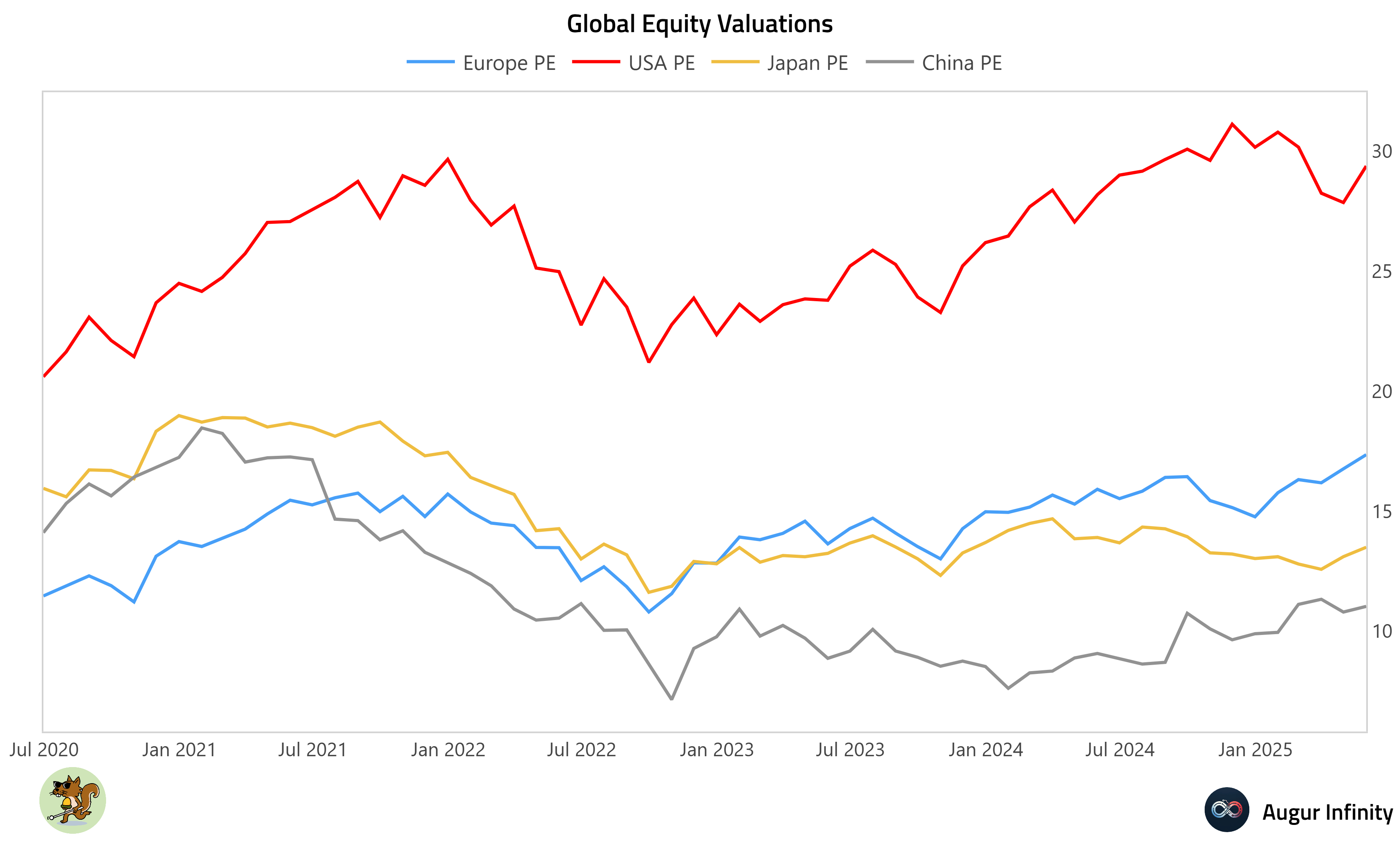 Well, if you zoom in you can just about see some modest outperformance - but it is pretty weak sauce. This is not just about a weaker dollar headwind, international equities had a strong month of upward re-rating. The valuation gulf (with US equities) remains enormous.