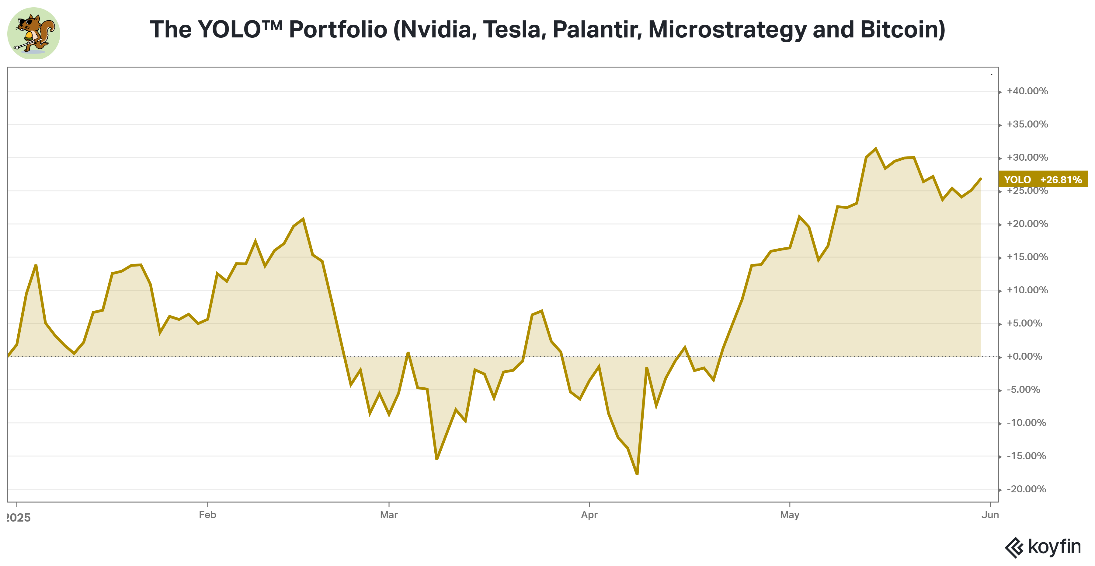 May was a month that rewarded 2 categories of investor, namely (i) those that never open their brokerage statements and (ii) Team YOLO™ (the 🐿️’s proxy for most ‘Robinhood’ retail portfolios) who bought the April dip in their favorite names like it was 1999 or 2021, and they carried on chasing in May!