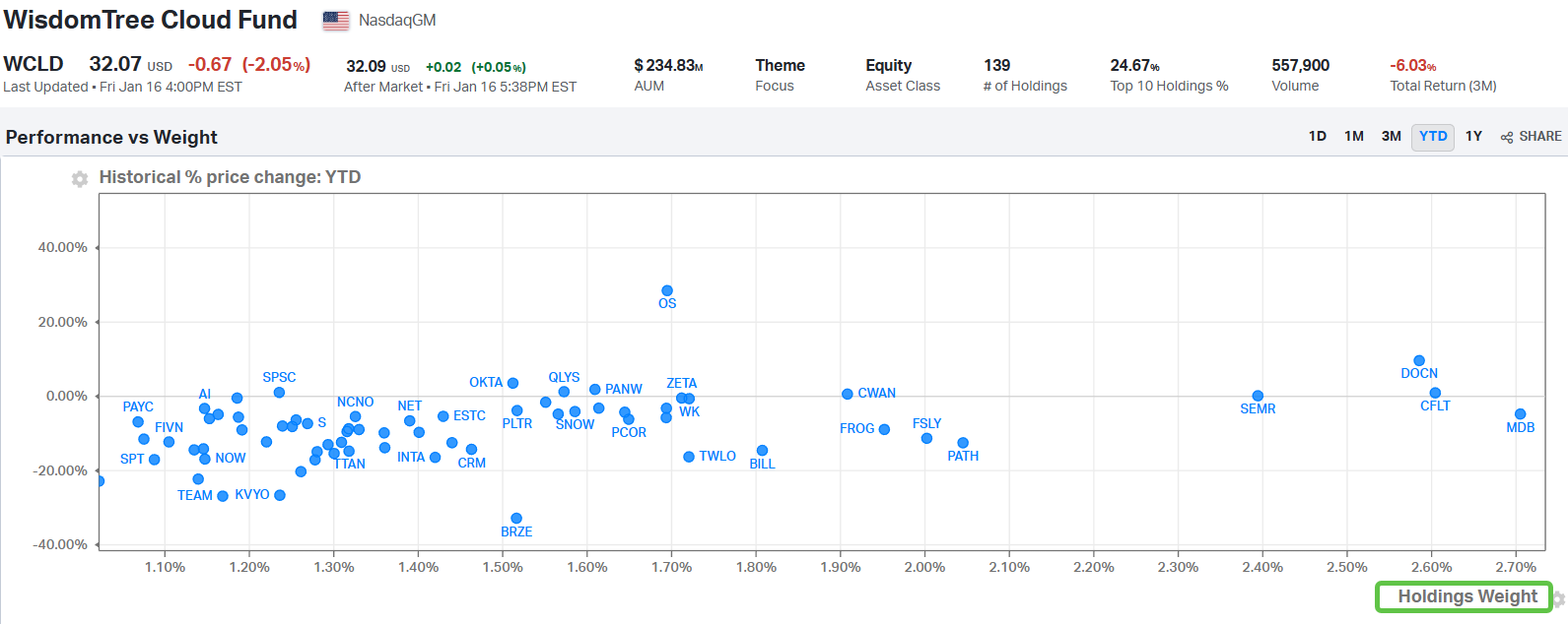 The WisdomTree Cloud ETF WCLD 0.00%↑ has been a regular feature of my short book for much of the past 18 months. It is a one-stop shop for excesses in voodoo accounting, high levels of stock-based compensation and idiotic valuations.