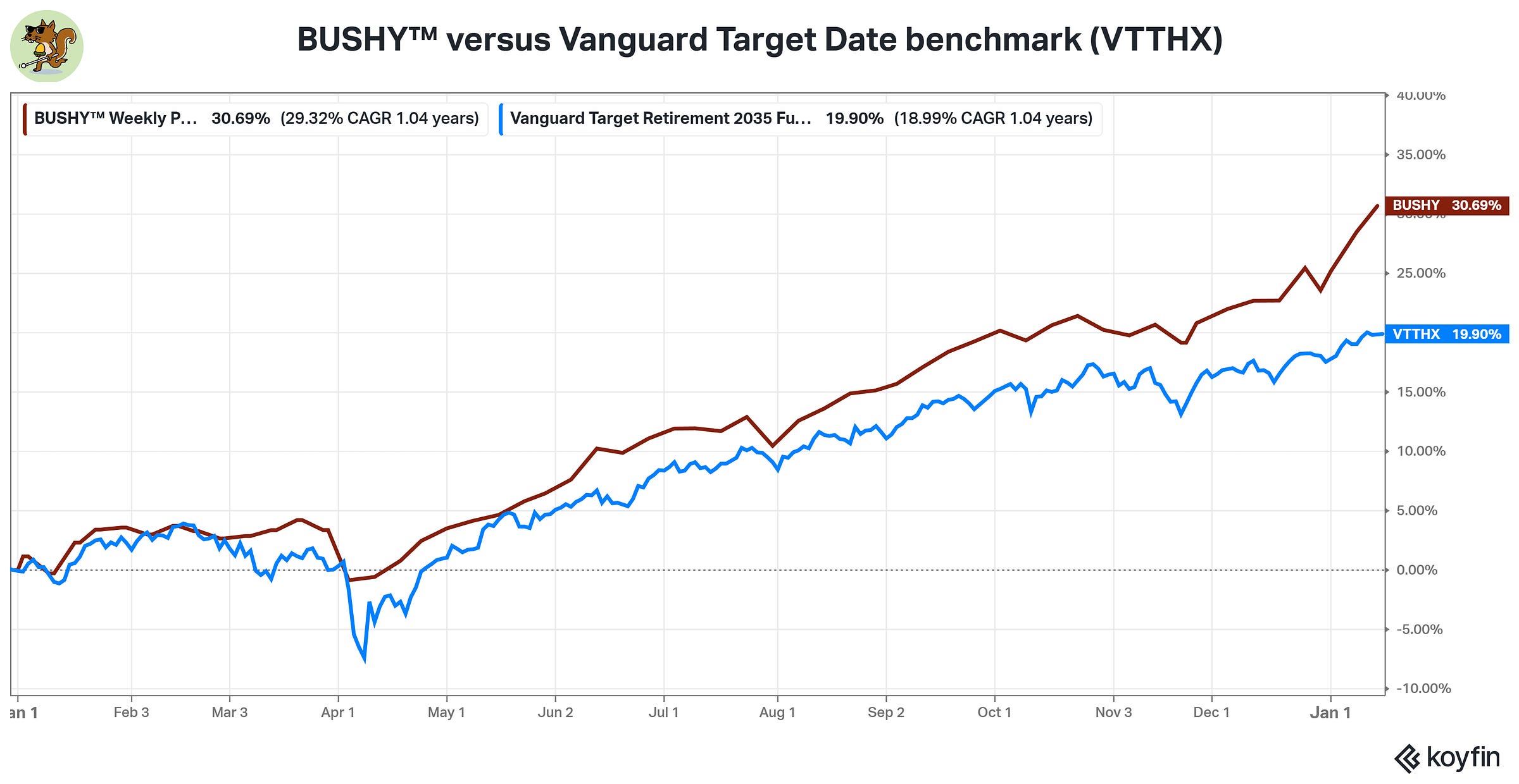 BUSHY™ now has over 10.8% of outperformance versus its ‘classic Big Retirement’ benchmark since I started sharing BUSHY™ with subscribers at the beginning of 2025.