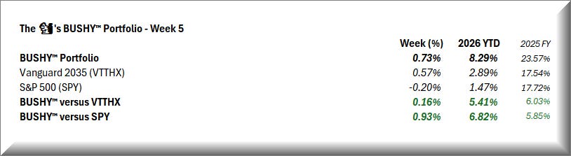 A solid week for BUSHY™ beta portfolio - more than erasing the drawdown in Week 4.