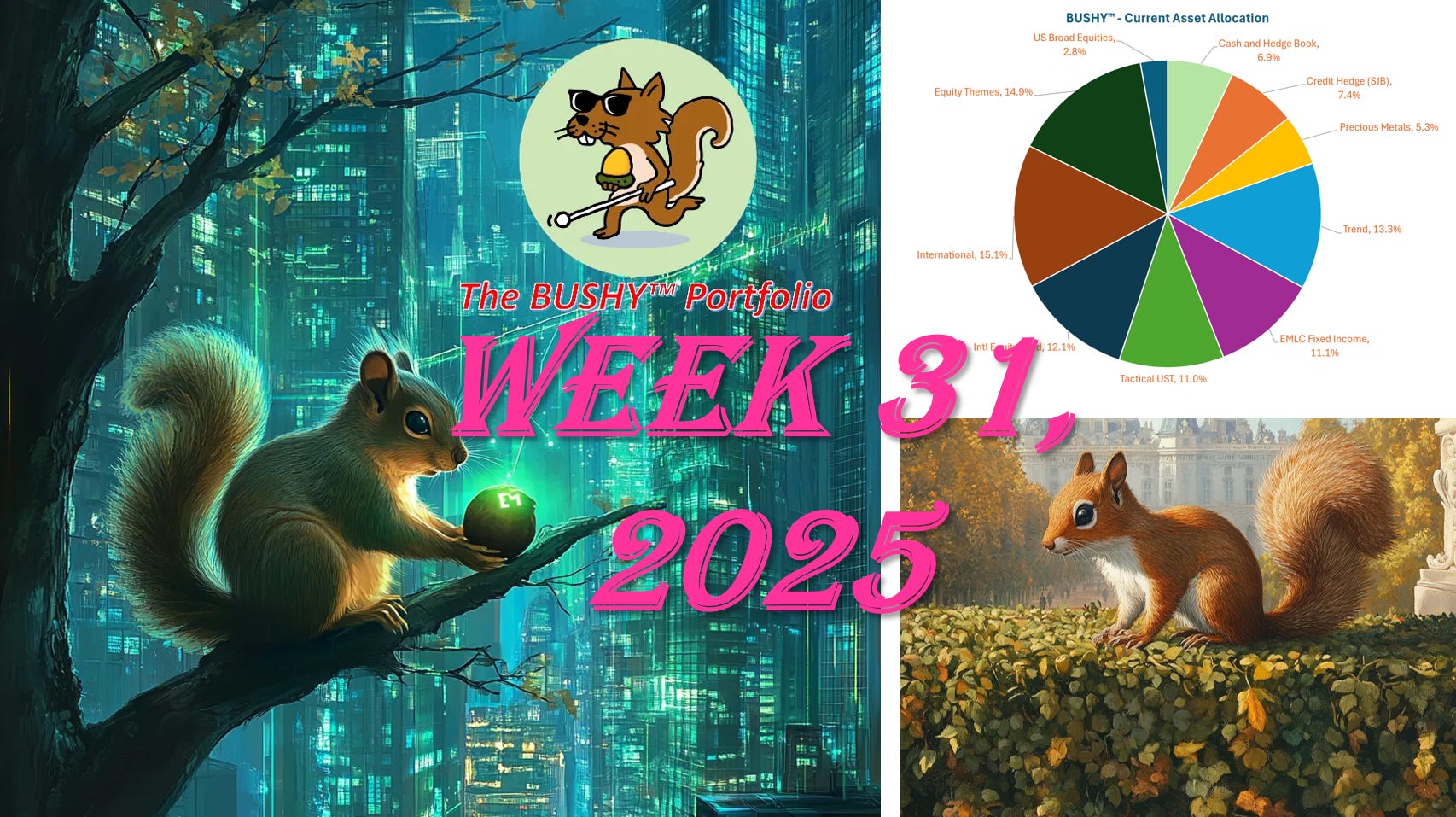 Review of the 🐿️'s BUSHY™ Multi Asset ETF Portfolio and live Acorn trade ideas. 2025, Week 31.
