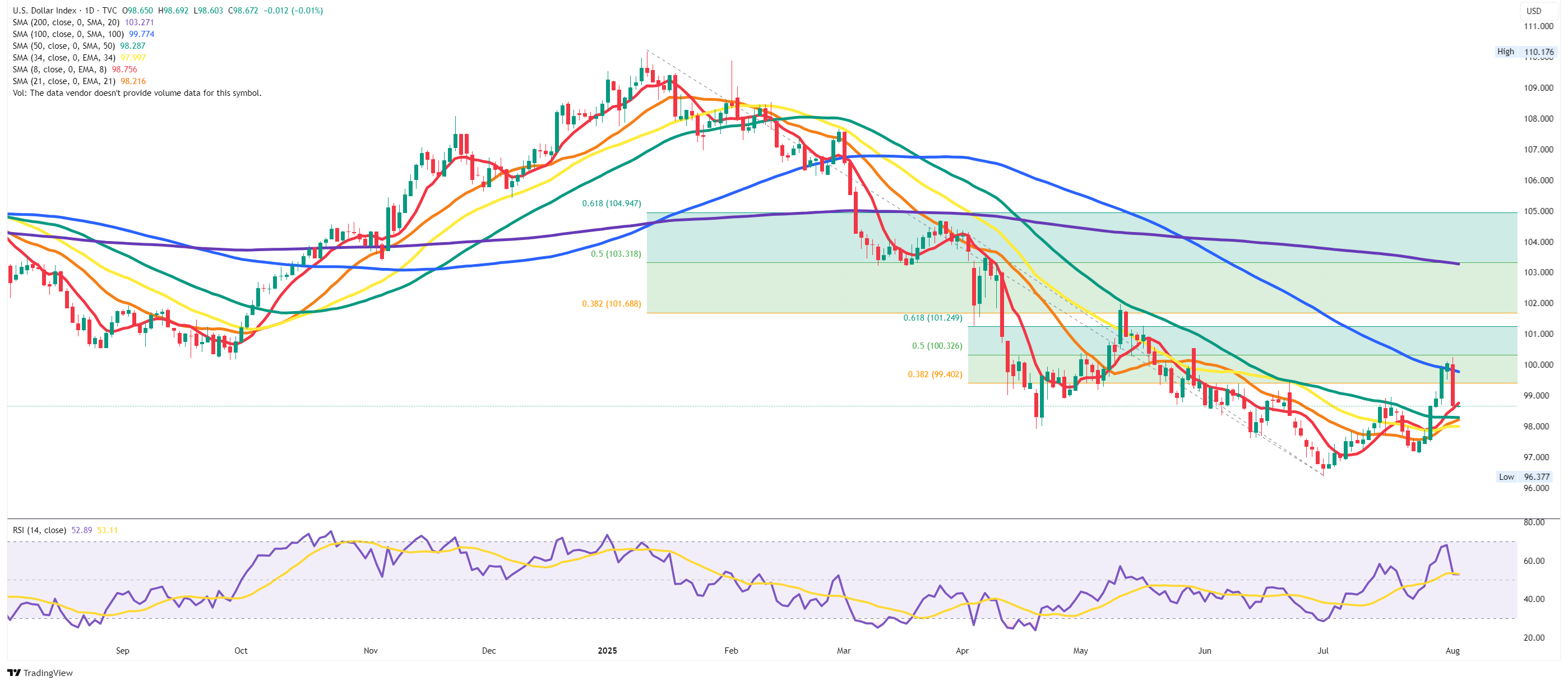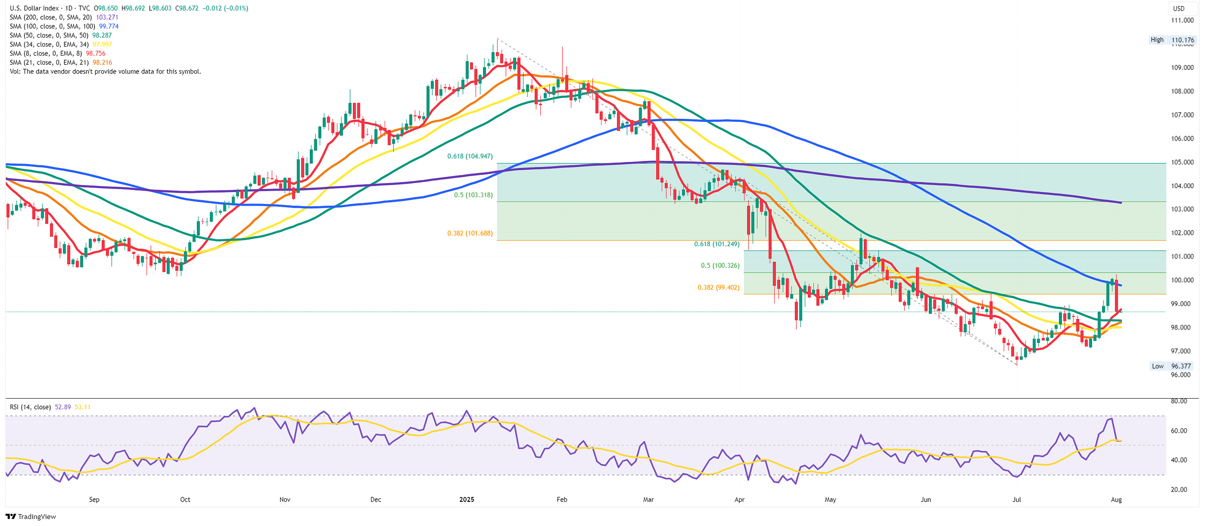 I would not be surprised to see the dollar recapture its 100-day SMA (blue line) but a quick drop back below the 50-day (green line, 98.29 currently) which has acted as pretty reliable resistance since early May could signal that the USD downtrend is going to push on.