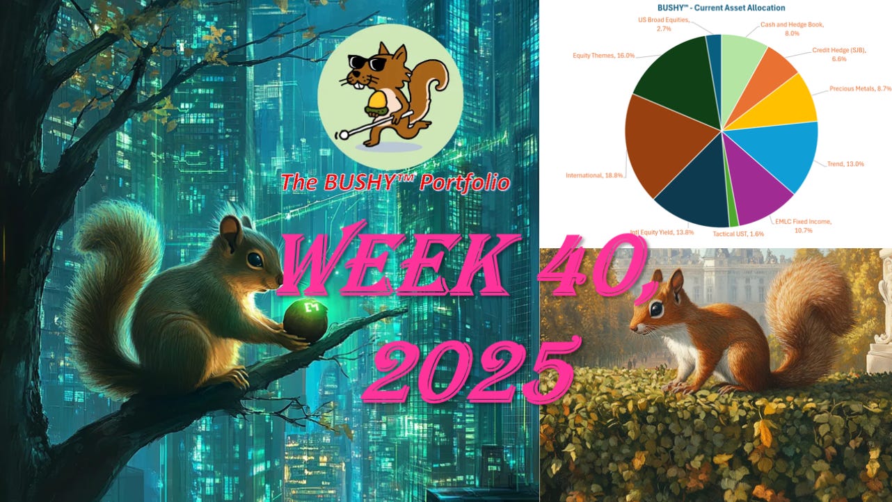 Review of the 🐿️'s BUSHY™ Multi Asset ETF Portfolio and live Acorn trade ideas. 2025, Week 40.