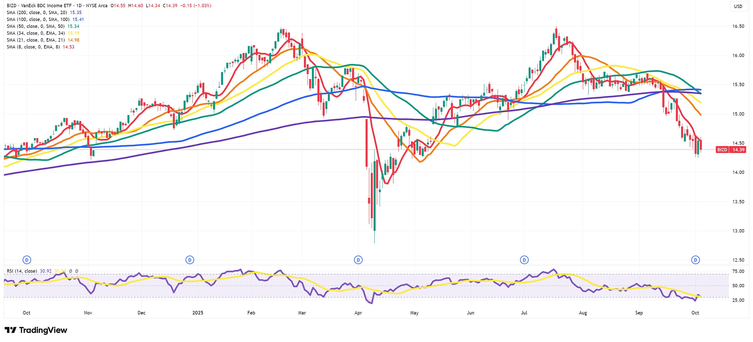 BIZD 0.00%↑ (VanEck’s BDC Income ETF) is the ‘one-stop shop’ if you want to look at the names within the BDC sector. The ETF has drawn down over 12% since peaking in July but shorting them involves funding a 11.9% dividend yield (of course, that is for only while those dividends are still being paid…)