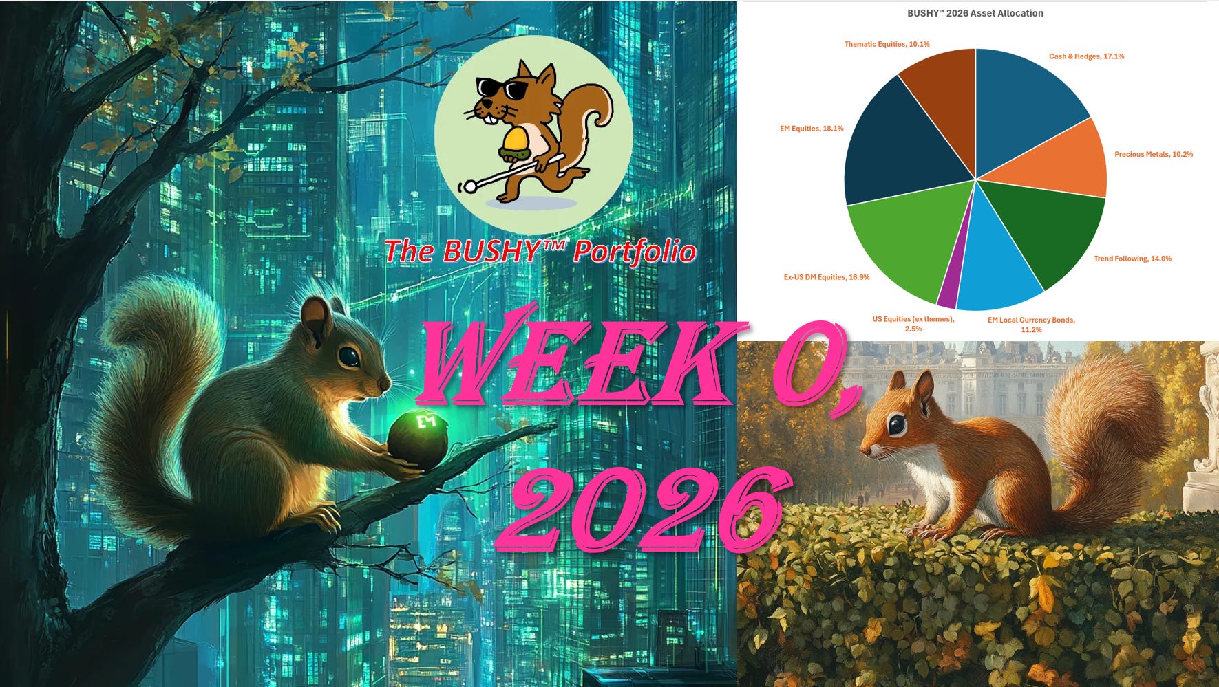 Weekly review of the 🐿️'s BUSHY™ Multi Asset ETF Portfolio and live Acorn trade ideas. 2026, Week 0 (all 1 day of it!).