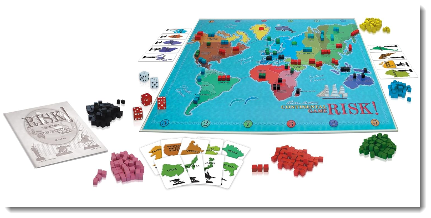 As kids, when horizontal Scottish rain (in August) forced the 🐿️ and his brother off the golf links of East Lothian, we were soon pleading with our father and uncle to sit down for some family male bonding via a game of Risk, the 1950s board game based on world domination.