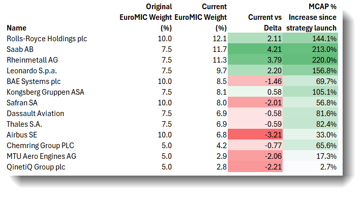 18 months into this strategy, the composition of EuroMIC has shifted significantly. At the individual stock level, EuroMIC was turbo-ed by 3 stocks (Rolls-Royce, Rheinmetall and Saab) returning over 100% in 2025 alone.