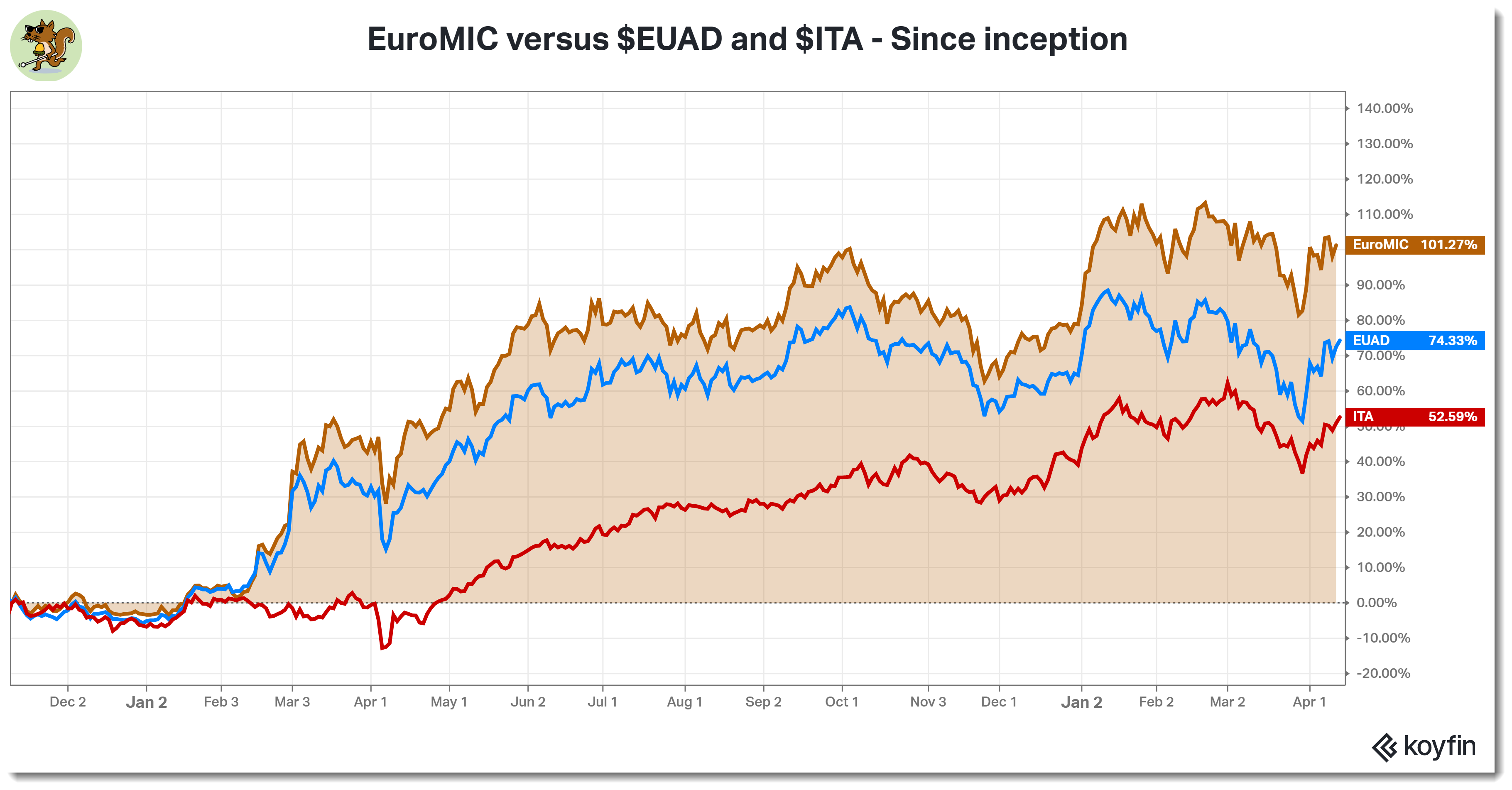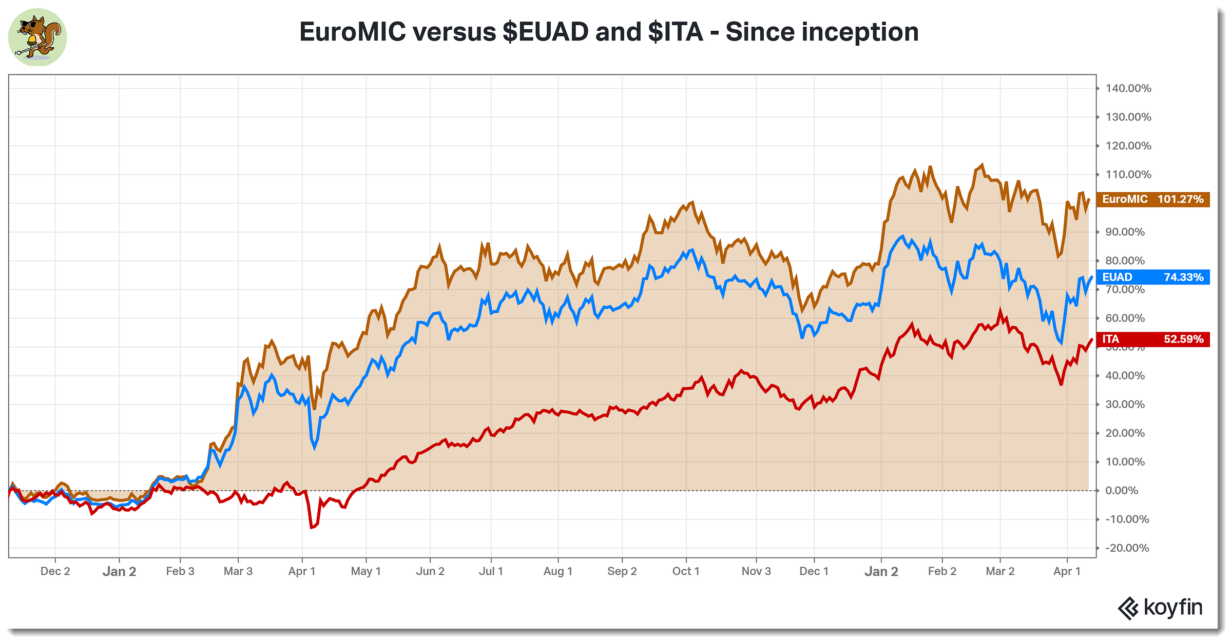 It also means that we need to rethink our positioning in global defense stocks. I first introduced EuroMIC, our basket of UK and European defense stocks in November 2024 (“Lost Umbrella”).