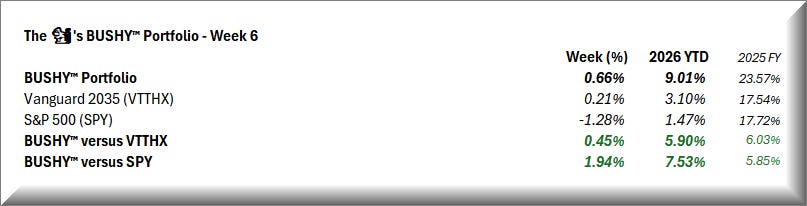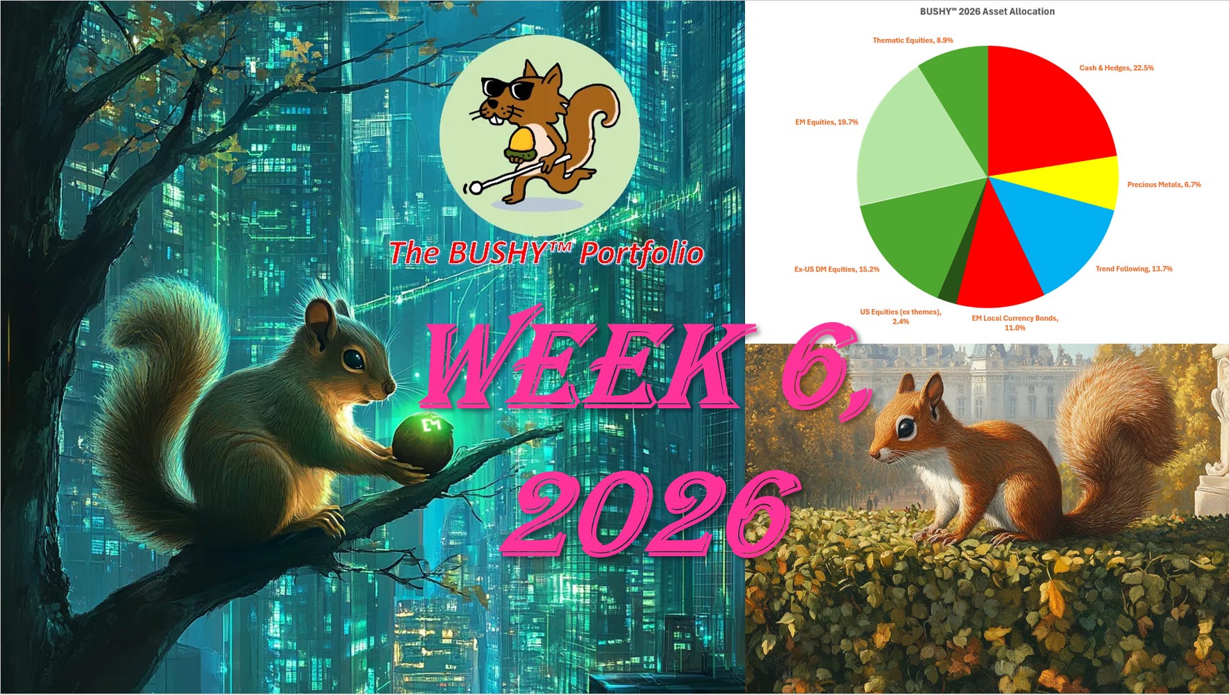 The 🐿️'s 'Start the Week' note! A quick check in on macro risks. Plus our regular review of the BUSHY™ Multi Asset ETF Portfolio and live Acorn trade ideas. 2026, Week 6.